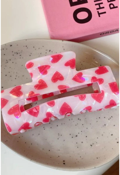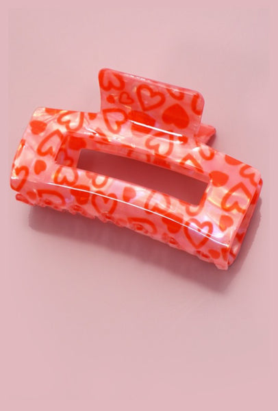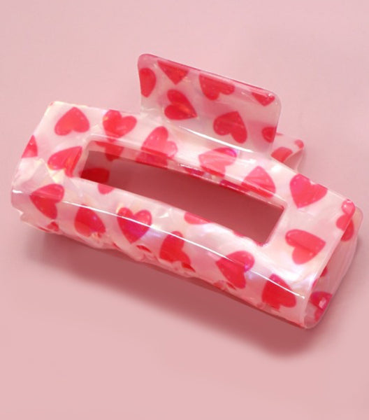 Keep that messy bun tamed with the cute rectangle heart design Hair Claw Clip. This classic hair claw clip features a beautiful heart design and hinge closure. Valentine's Day Gift.