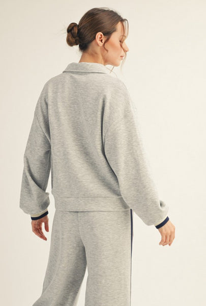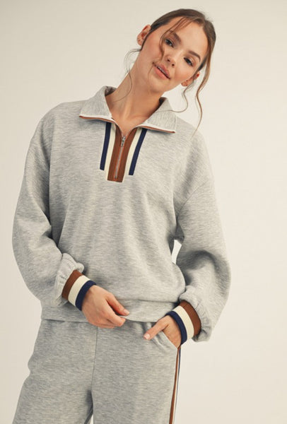 Long sleeves front zip up sweatshirt with colorblock trim detail.
