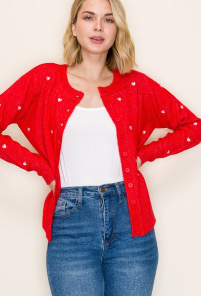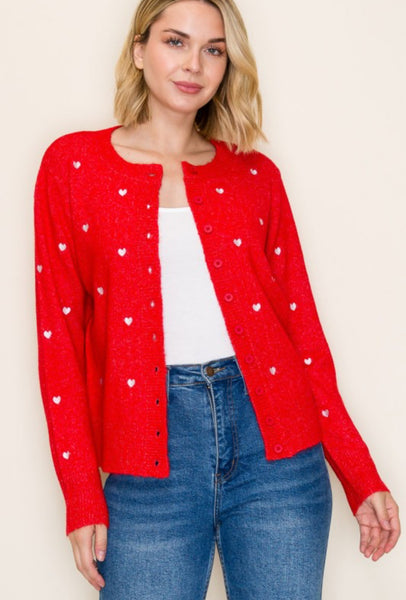 Valentine Hear Sweater Cardigan. Red