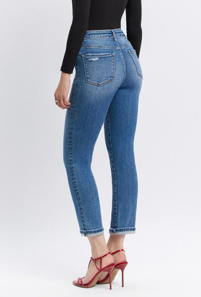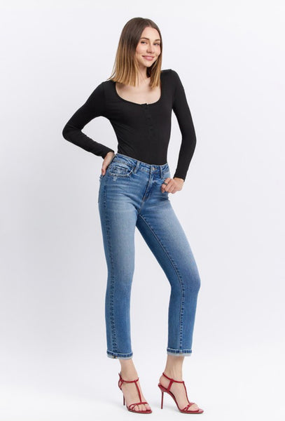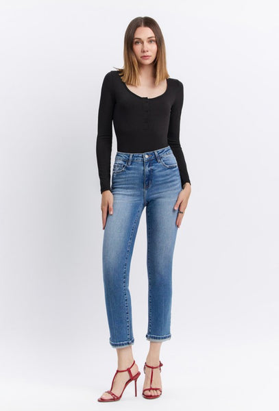 HIGH RISE CUFFED CROP SLIM STRAIGHT JEANS